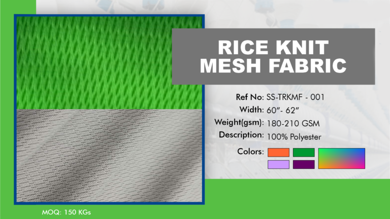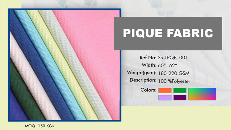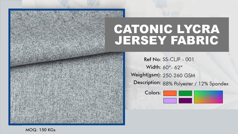 Fabrics selection is most basic part of custom ordering. The Key points in fabric selection are Fabric Type, fabric GSM, Fabric Color Shade, Fabric Activity Features and feel. Professionally, we normally like to exchange the fabric sample before to go for production. It is slightly cost effective procedure due to offshore shipping charges but in large quantity orders it’s still preferred by our professional customers to keep their quality uniform with further satisfaction of laboratory test reports. Sometimes, demand of unique fabric by our clients, which is rarely available in stock and have to go for customized knitting is only feasible in large quantity order i.e. 400 Pieces or more in one kind of customized fabric. However regular fabric selection, there is no minimum quantity barrier. There are regular qualities & types of Fabrics commonly recognized globally are provided below for consideration. We are always happy to assist our clients in fabric selection process, so please contact our expert for mutual understanding in fabric selection.
